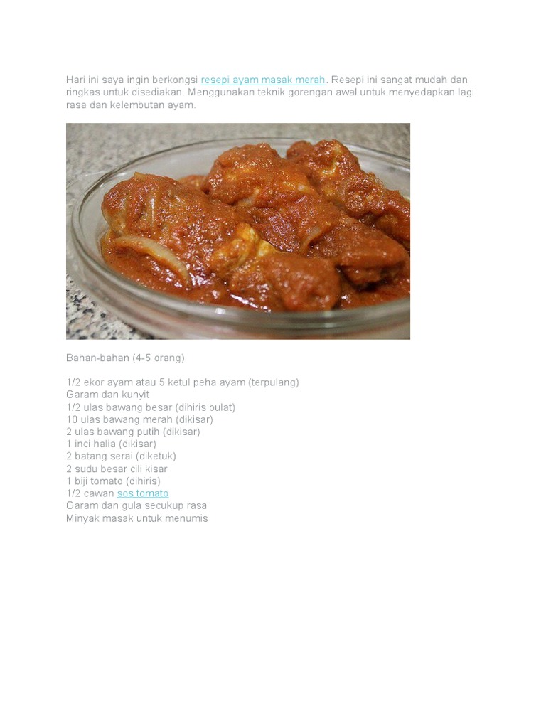 Resepi Ayam Masak Merah Simple Dan Paling Sedap Resepiayamnet