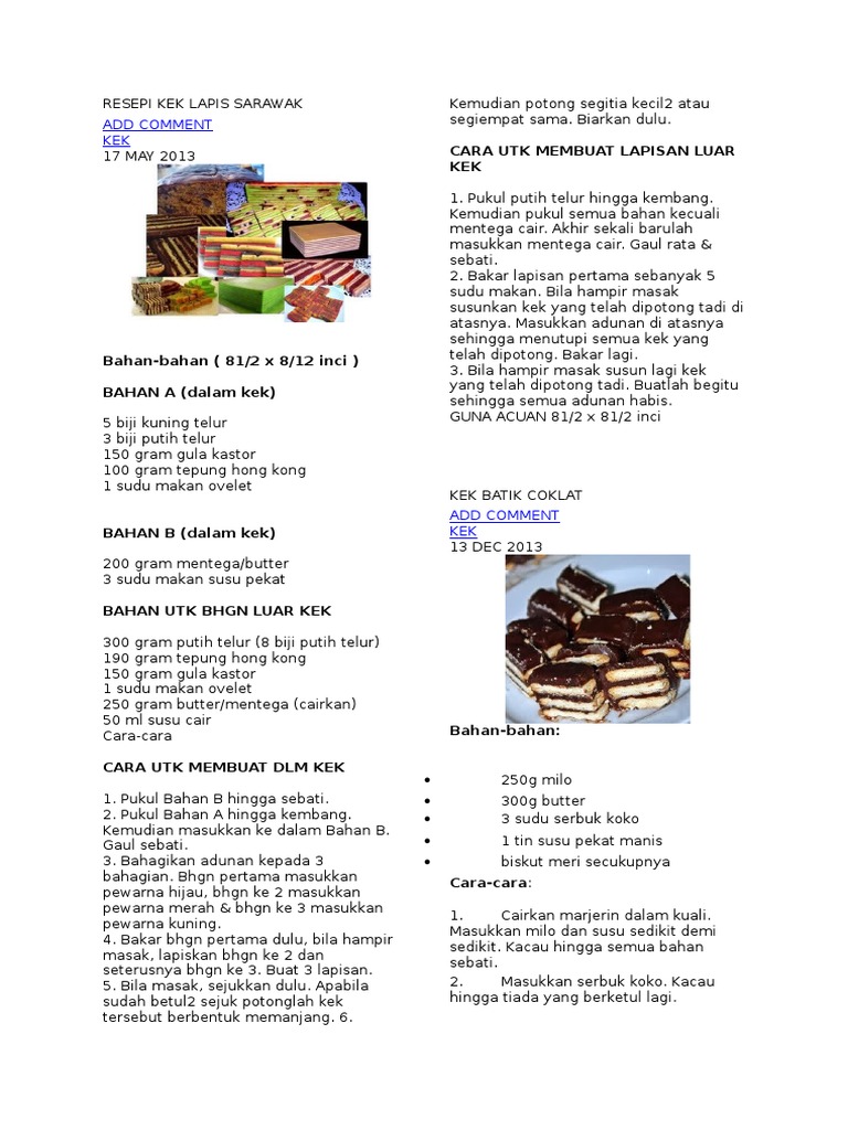 10 Resepi Kek Batik Lembut Sedap Dan Enak Terbaru